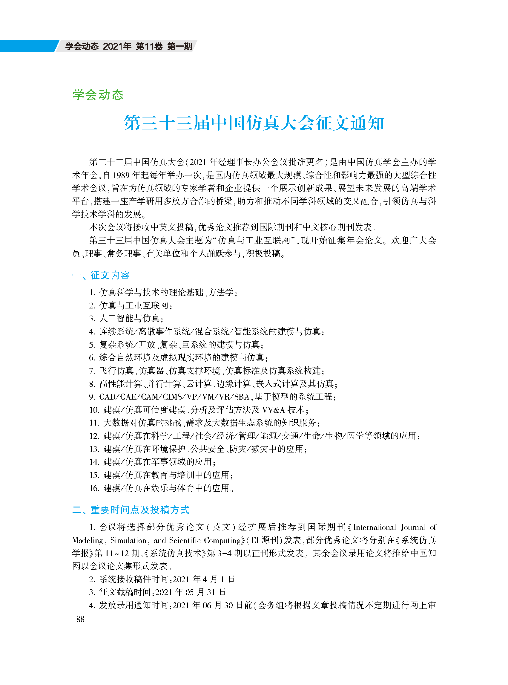 《中国仿真学会通讯》2021年第一期