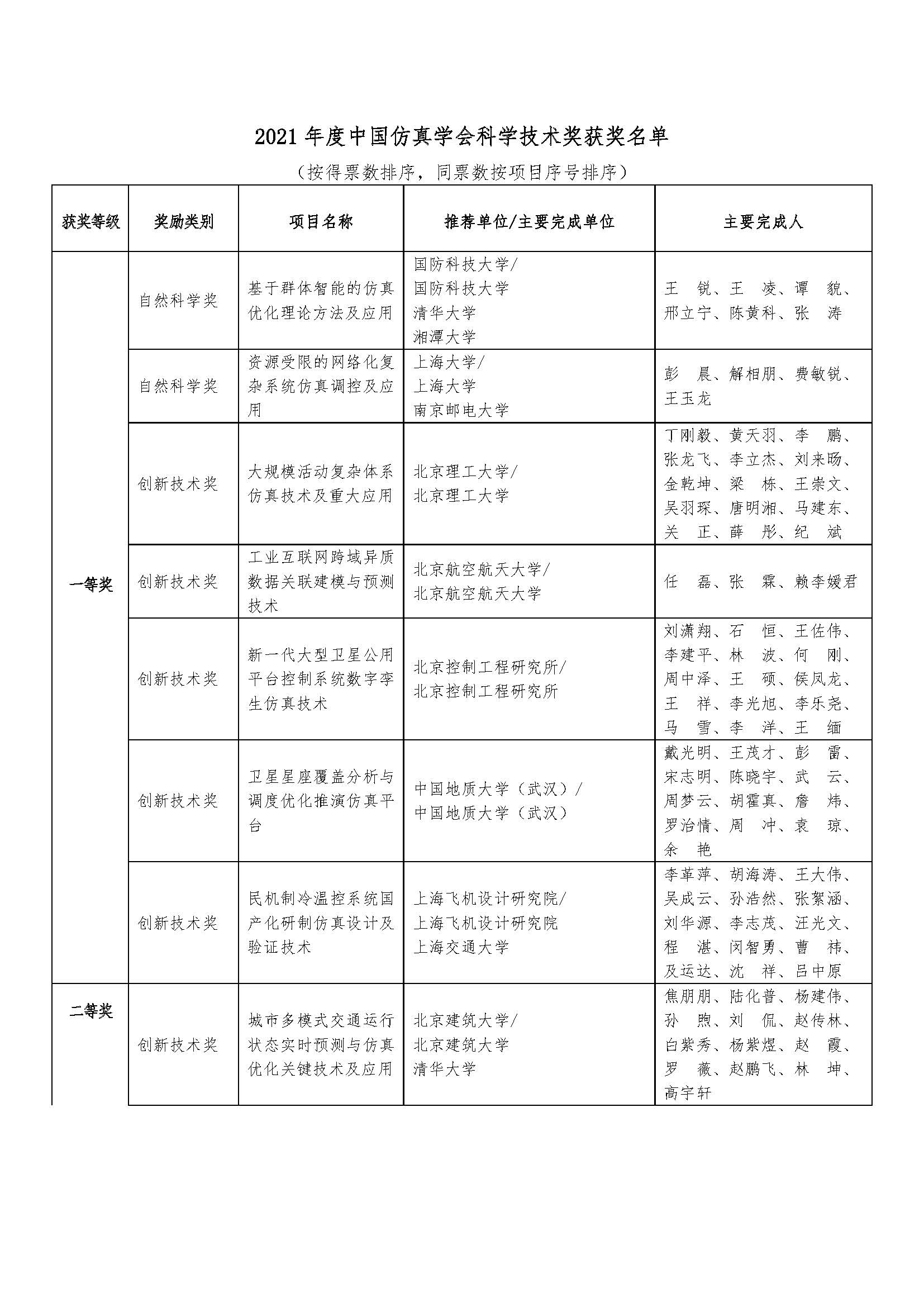 2021年度中国仿真学会科学技术奖获奖名单