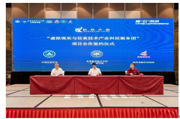 签约仪式上,中国仿真学会、南昌高新区和北航江西研究院分别由"科创中国"虚拟现实与仿真技术产业科技服务团项目负责人沈旭昆教授、南昌高新区科技局局长黎晓亮、北航江西研究院航空仿真与虚拟现实技术团队骨干教师赵永嘉,代表各自单位签订三方战略合作签约,携手共建"虚拟现实与仿真技术产业科技服务团"。服务团将立足于南昌高新区企业发展的需求,整合多方资源,通过技术、人才等创新资源下沉和落地服务,加速各类 VR 人才的培养,帮助本地企业、专家更高效地实现科技成果转化。