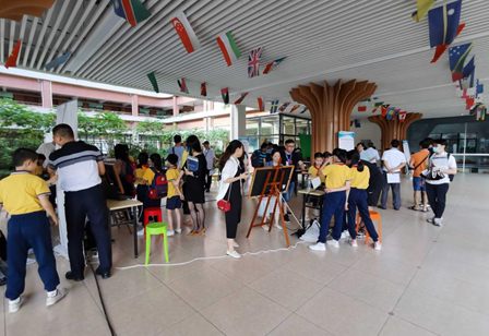 (3)2021年5月21号,在佛山科技学院实验小学,做"多模态虚拟实验环境"的科普讲座,小学生兴致勃勃地体验了我们开发的虚拟实验系统。