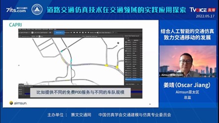 Aimsun亚太区总监姜靖(Oscar Jiang)则在"结合人工智能的交通仿真致力交通移动的发展"主题演讲中介绍了交通系统及交通仿真的发展趋势、超整合交通系统、AIMSUN方案,aimsun next三个模型层级等内容。