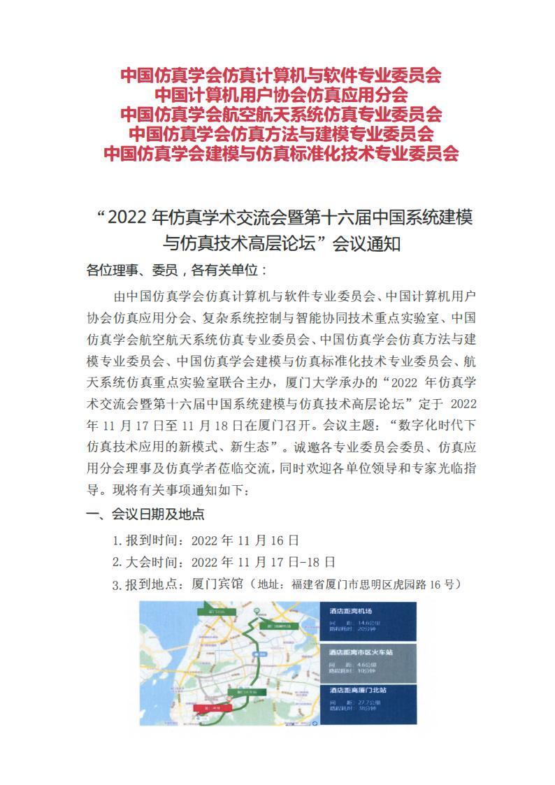 2022年仿真学术交流会暨第十六届中国系统建模与仿真技术高层论坛会议通知