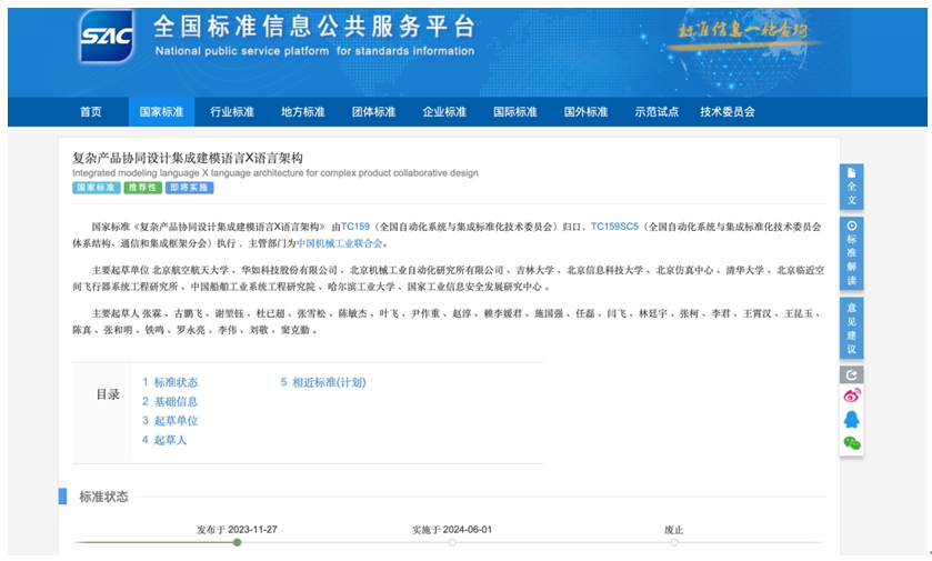 我国自主研发的《复杂产品协同设计集成建模语言X语言架构》国家标准,于2023年11月27日正式发布。
