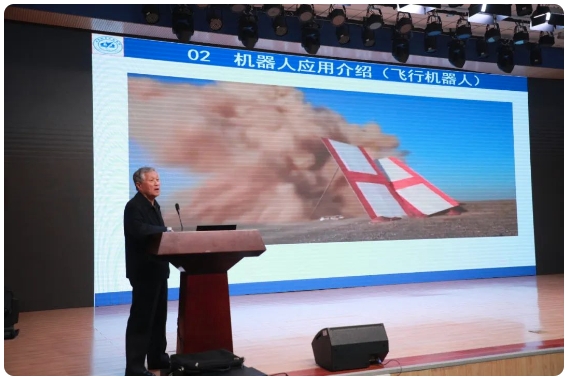 贠超教授进行《智能机器人的应用现状和发展趋势(与人类共融的智能机器人世界)》科普知识讲座。贠教授从机器人的概念入手,介绍了在生产、特种环境和特种作业、生活服务和娱乐、研究等场所应用的几种典型机器人,以及机器人的发展趋势,不断趋近于人类的思维逻辑推理能力、灵活敏捷、更加人性化的人机协作等。贠教授着重讲授了航空航天领域的几种机器人典型应用实例,如飞行机器人、空间机器人、月球车等。