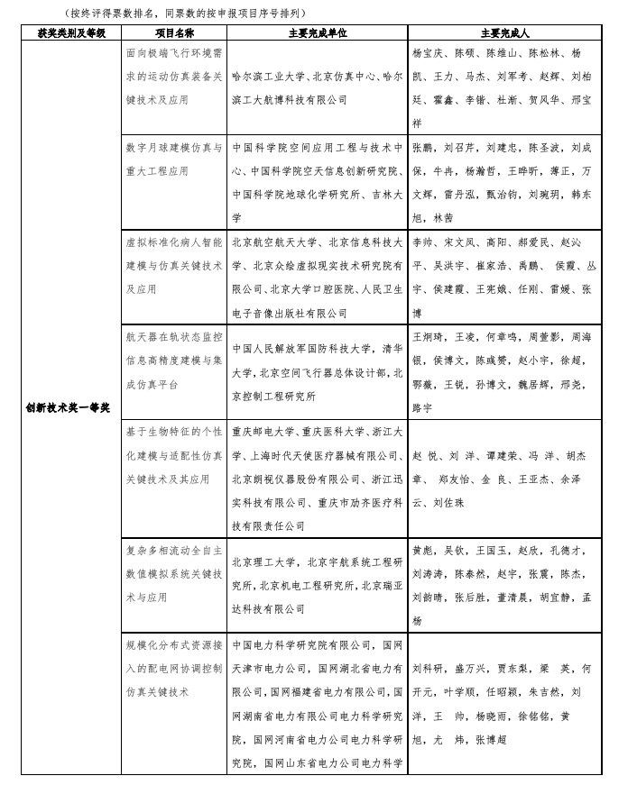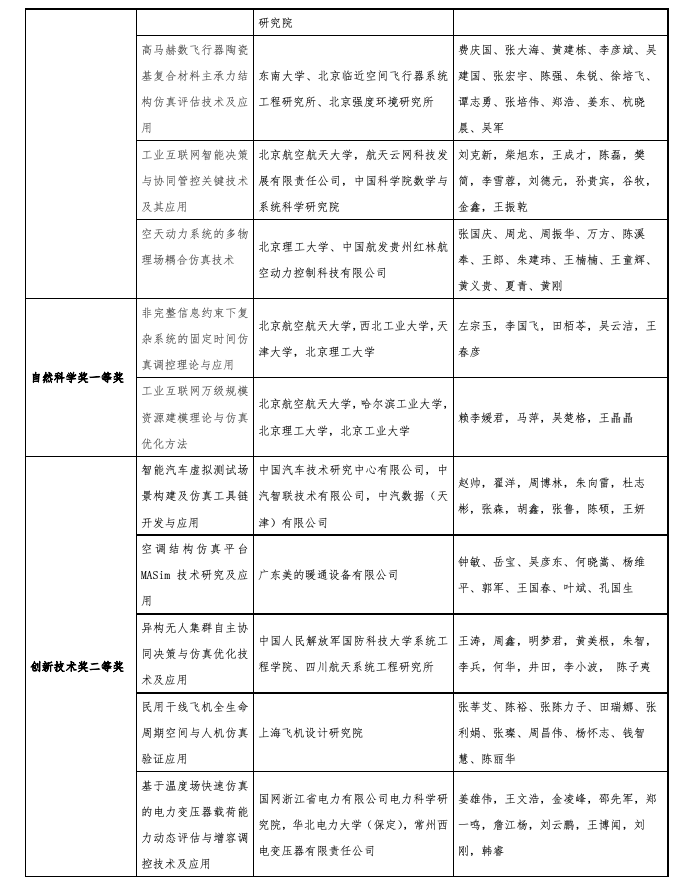 2024年度中国仿真学会科学技术奖获奖名单