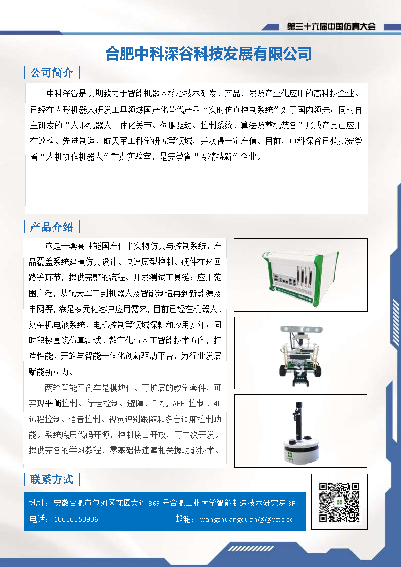 中科深谷是长期致力于智能机器人核心技术研发、产品开发及产业化应用的高科技企业。已经在人形机器人研发工具领域国产化替代产品"实时仿真控制系统"处于国内领先;同时自主研发的"人形机器人一体化关节、伺服驱动、控制系统、算法及整机装备"形成产品已应用在巡检、先进制造、航天军工科学研究等领域,并获得一定产值。目前,中科深谷已获批安徽省"人机协作机器人"重点实验室,是安徽省"专精特新"企业。
