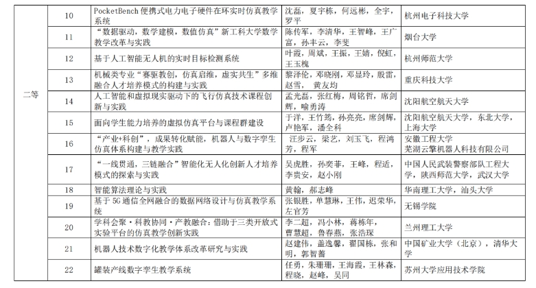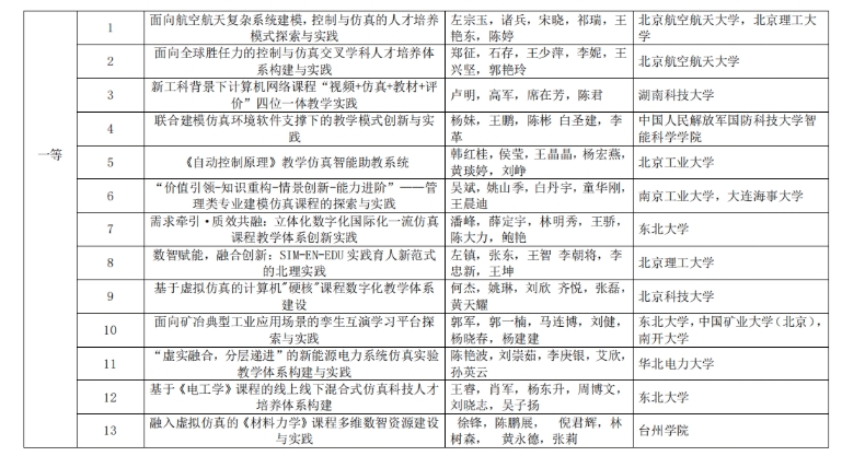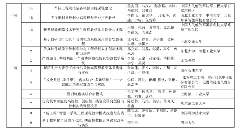 2025年度中国仿真学会高等教育教学成果