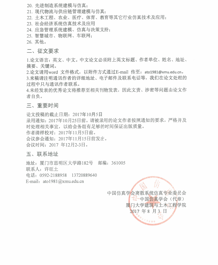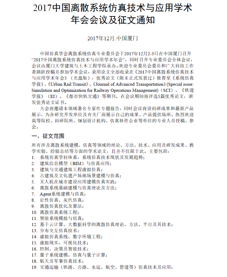 2017年中国离散系统仿真技术与应用学术年会会议及征文通知