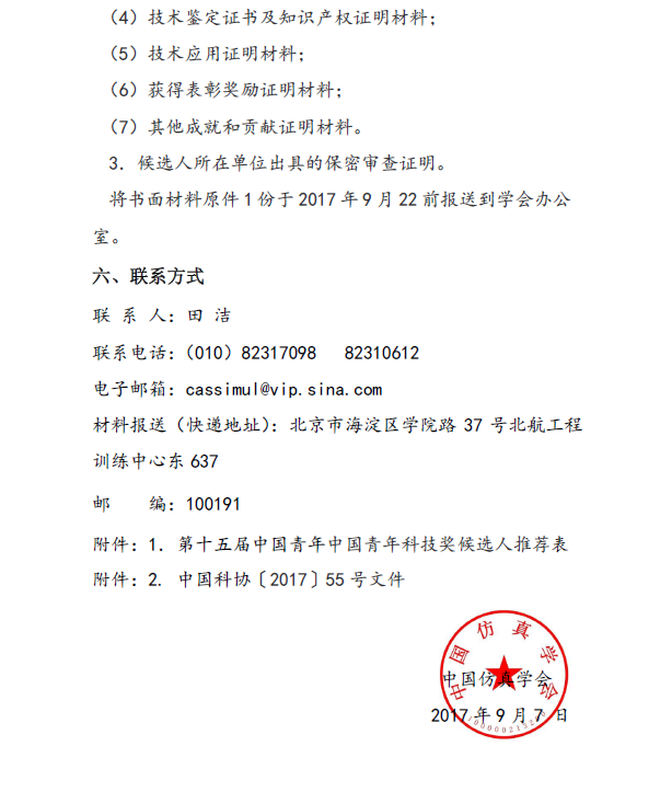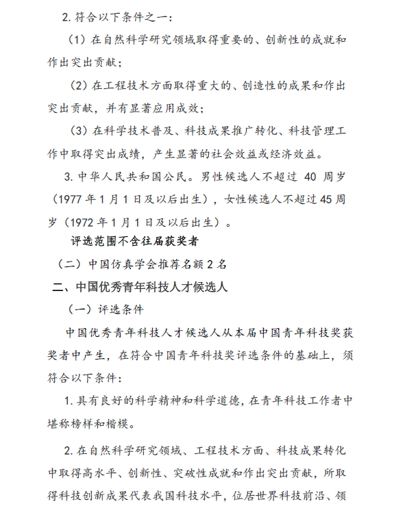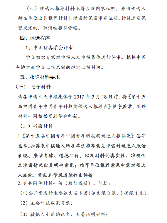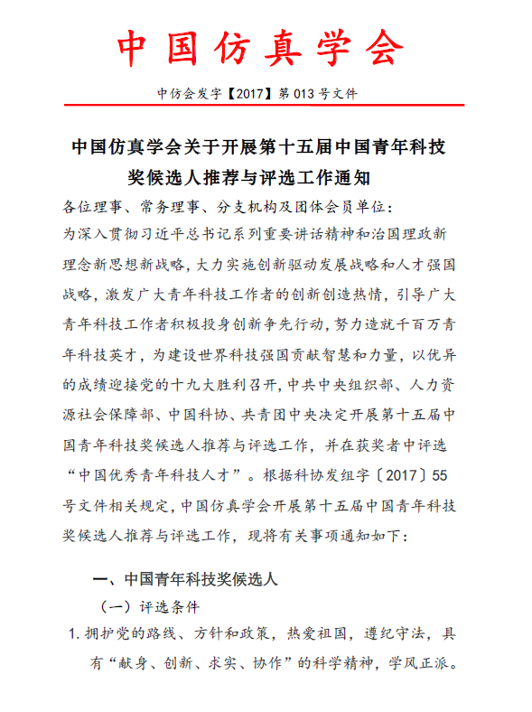 中国仿真学会关于开展第十五届中国青年科技奖候选人推荐与评选工作通知