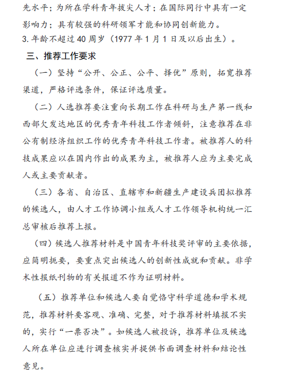 第十五届中国青年科技奖候选人推荐与评选