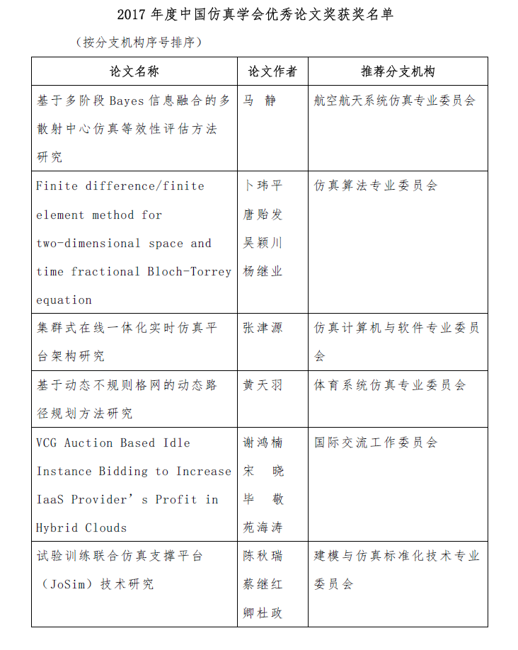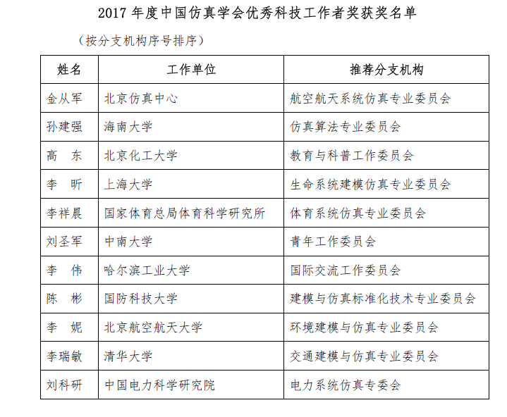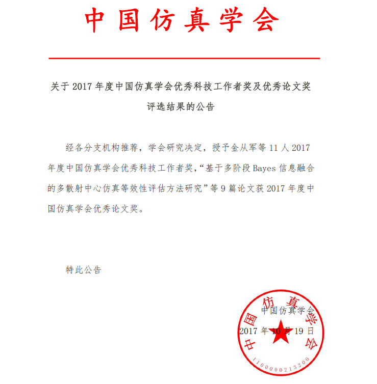 关于2017 年度中国仿真学会优秀科技工作者奖及优秀论文奖评选公告