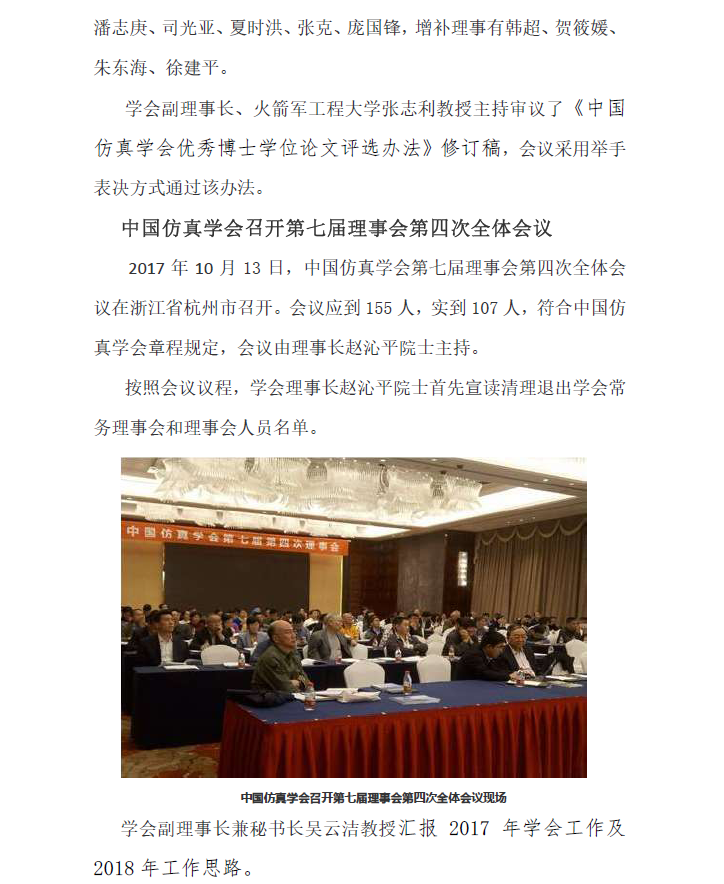 中国仿真学会召开第七届常务理事会第七次全会议及第七届理事会第四次全体会议在杭州召开
