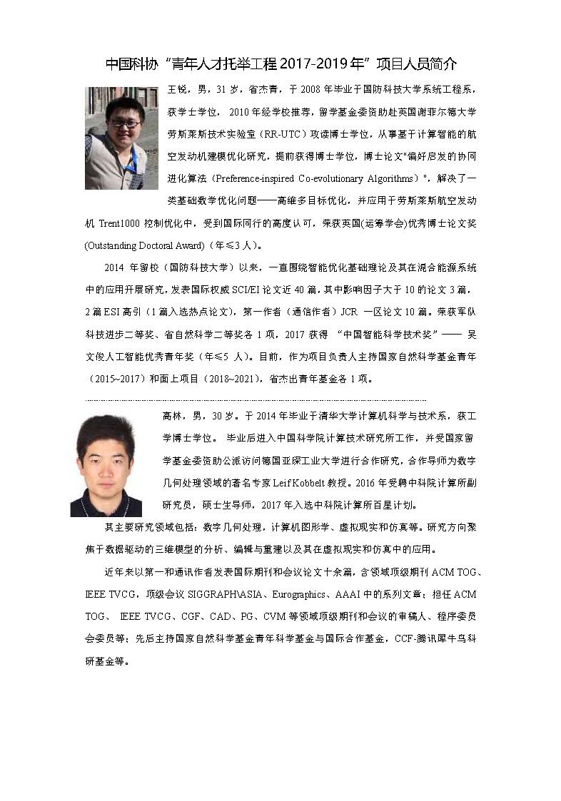 中国科协"青年人才托举工程2017-2019年"项目人员简介