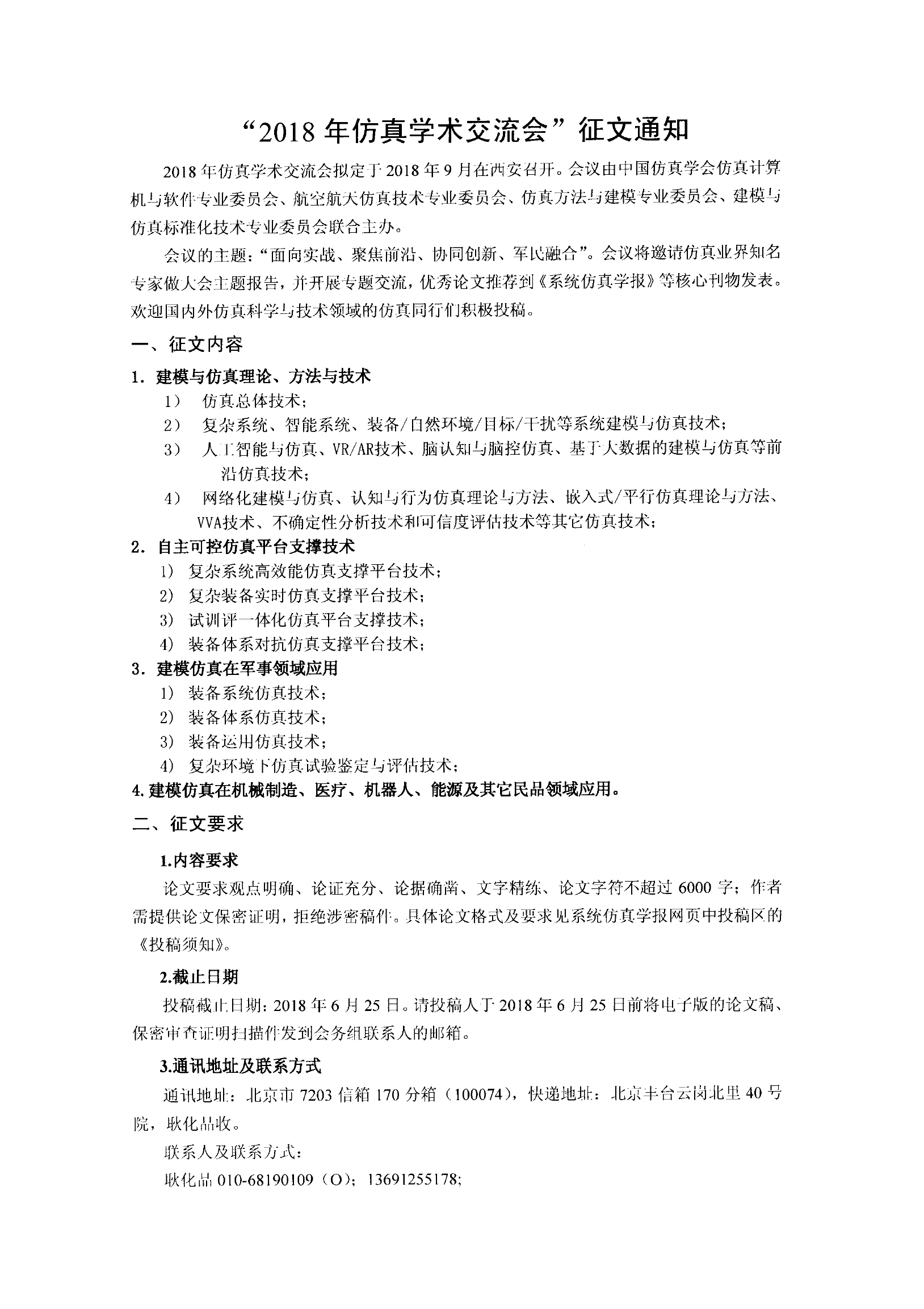 2018年仿真学术交流会征文通知