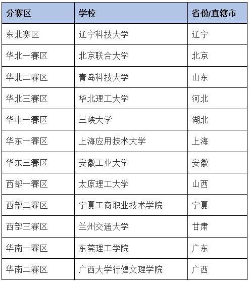 二、分赛区名单公布:
