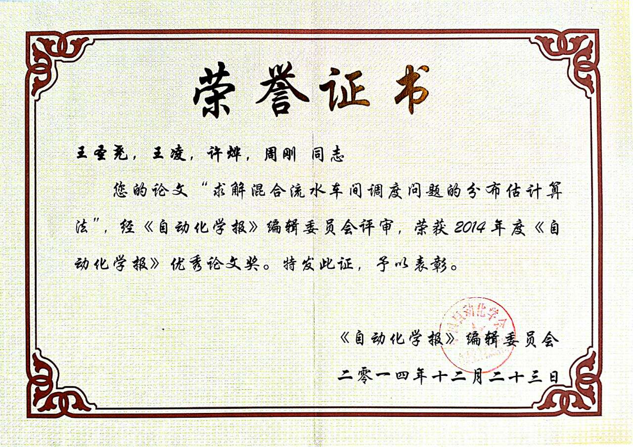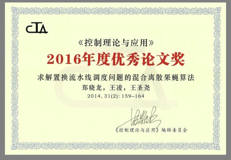 专委会王凌教授荣获《控制与决策》优秀论文奖