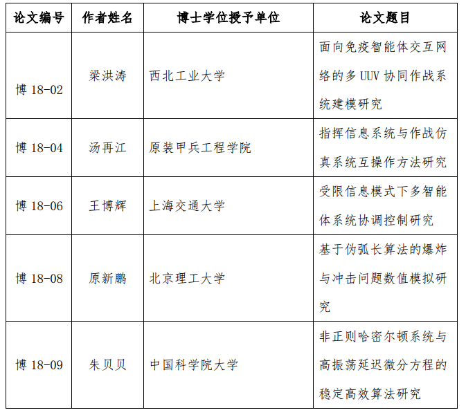 根据《中国仿真学会优秀博士学位论文评选办法》,经专家评审,拟授予以下5篇博士学位论文"华如杯"2018年度中国仿真学会优秀博士学位论文奖。