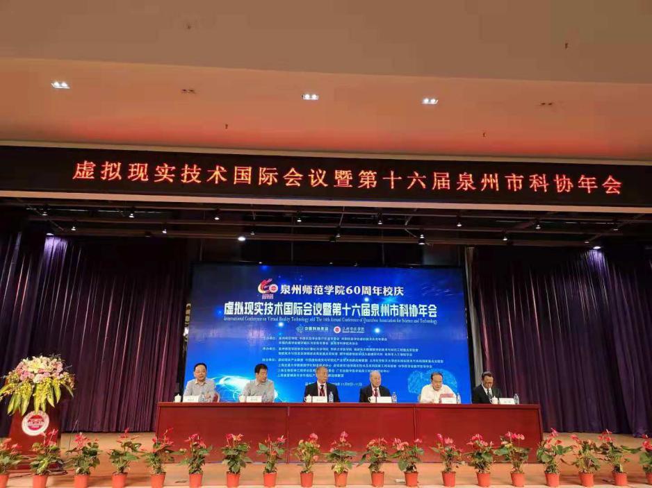 泉州市副市长洪自强,泉州师范学院党委副书记、院长屈广清,中国仿真学会理事长、中国工程院院士赵沁平发表致辞。此次会议主要关注"虚拟现实文化再现""虚拟现实健康领域应用"两大板块