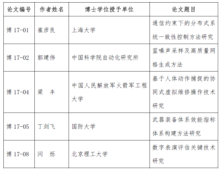 "华如杯"2018年度中国仿真学会优秀博士学位论文名单