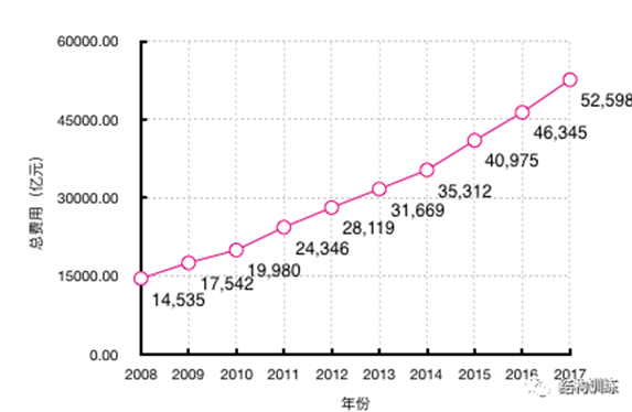 图1 我国总卫生支出费用(数据来自国家统计局2008-2017)