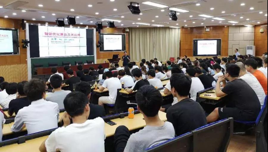 在随后的报告中,清华大学王凌教授等专家从人工智能的起源、研究目标过渡到研究范式及历程、研究领域划分,以及智能优化方案及应用,计算机的发展前景及未来就业等方面进行了深入讲解。研讨会会场 3208 智慧教室座无虚席,计算机科学与技术学院的本科生及部分老师参加了会议,并与专家进行了深入交流。
