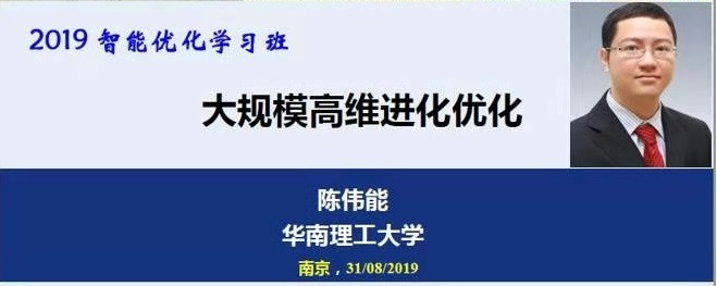 讲座七:《大规模高维进化优化》。华南理工大学陈伟能教授讲授了高维进化计算的研究背景及面临的研究现状与挑战,以及实际应用中的大规模高维优化问题。