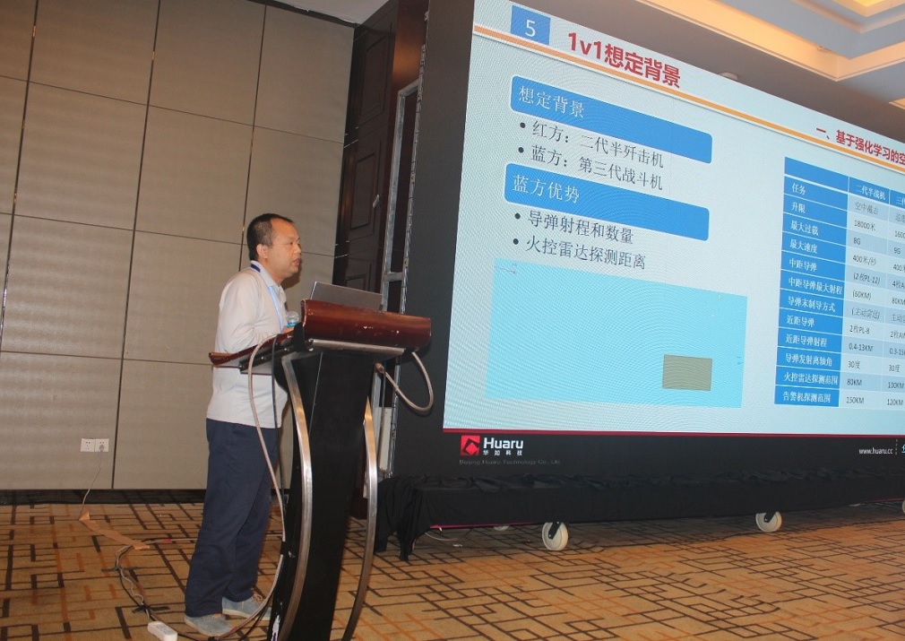 北京华如科技股份有限公司副总经理、技术总监张柯博士作了《基于事件驱动及时态抽象的分层强化学习技术在XSIM平台中的应用》的学术报告。报告中提出传统以规则为基础的CGF系统存在全面依赖专家经验及缺少灵活性的缺点,而近年以AlphaGo为代表的深度强化学习技术取得了突飞猛进的发展,在充分借鉴现有即时策略游戏博弈智能的基础上,探索结合有限专家经验及事件驱动的分层强化学习技术,将策略梯度优化技术与时态抽象技术结合到一起,有效降低策略搜索空间,并与XSIM平台现有的规则模型进行对抗,我们在中远距空战对抗领域进行了单机与多机的智能决策与训练,训练结果表明,基于事件驱动并结合专家知识的作战智能体可以在与规则对抗的过程中不断提高自身策略水平,并逐渐提高对规则模型的胜率。