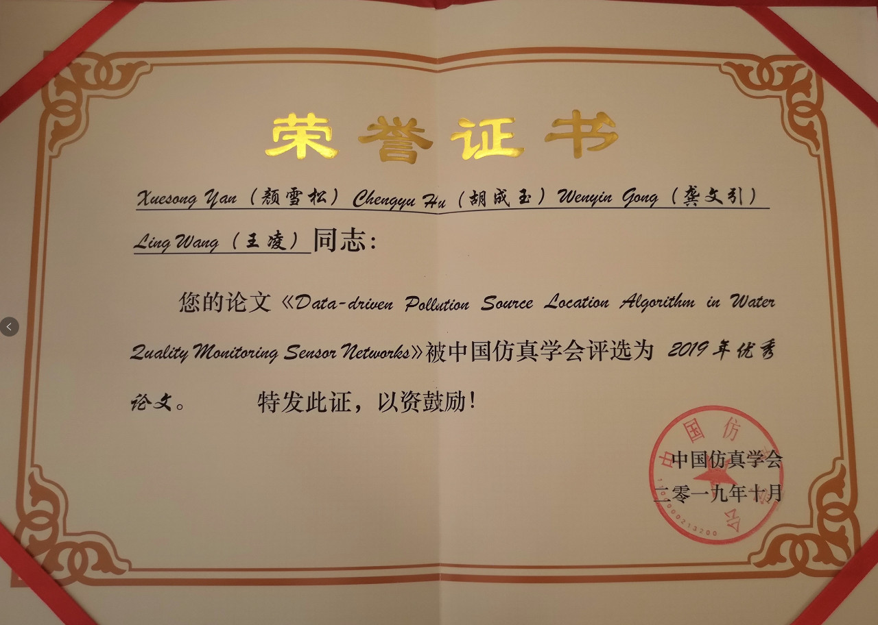 颜雪松(中国地质大学<武汉>)等委员荣获2019年度 "中国仿真学会优秀论文奖"。