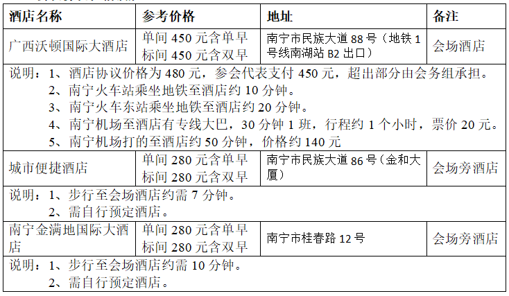 南宁广西沃顿国际大酒店二楼北京厅,南宁市民族大道88号(地铁1号线南湖站B2出口)。参会代表会议期间的食宿及交通费用自理。