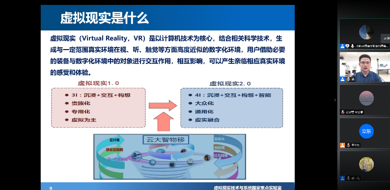 本次活动首先由北航VR国重的高阳老师在线讲解了虚拟现实及其行业应用;之后在线展示了血管介入手术仿真系统、口腔手术虚拟仿真系统和腹腔镜手术仿真系统的主要功能;接着通过VR全景直播方式,带领山东、山西、黑龙江、辽宁、湖北等地的师生,参观了VR国重实验室;最后,安排参观者在线开展了口腔医学操作虚拟仿真实验,让参与者身临其境地体验了网上实验教学新模式。