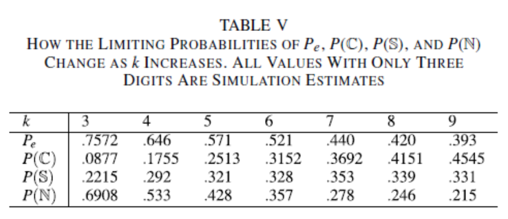 4.利用上述数学模型,证明了循环排序悖论、非适者生存悖论和无悖论正常状态构成了最优化算法数值比较的一个分割,从而它们的概率之和等于1;并据此计算了这三个随机事件发生的概率,详见表IV和表V,其中C,S,N分别代表了循环排序悖论、非适者生存悖论和无悖论正常状态这三个随机事件;特别地,当只比较3个算法时,这三个随机事件的发生概率随测试问题而改变的情况详见论文中的图8, 图10和图11。